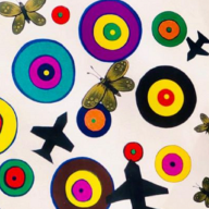 This is a photo of Gazan artist Dina Mattar holding the painting she made in February 2024 in a refugee camp in Rafah. The painting is the basis for this new solidarity Instagram account & the website http://www.bombersintobutterflies.com. Dina posted this photograph of herself on March 17, 2024, with the words: “I’m here…in Gaza🥺?can anyone…